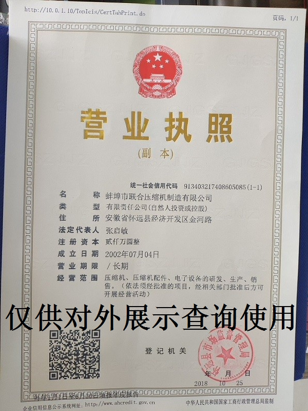 蚌埠市聯合壓縮機制造有限公司于2002年成立,安徽省高新技術企業。企業位于安徽省蚌埠市懷遠經濟技術開發區,地理位置優越,交通便利,配套設施齊全。公司自成立至今,已為全國及周邊國家地區的企業客戶提供了可靠的壓縮機專業解決方案及優質便捷的售后服務。